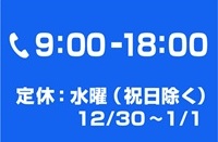 - 9:00~18:00 定休日毎週水曜日(祝日除く)12/30~1/1